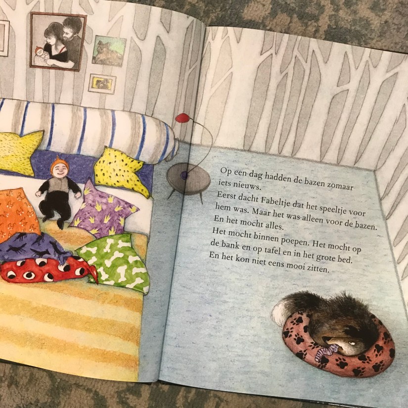 Anna Woltz kan niet alleen prachtige boeken schrijven voor oudere kinderen, maar ook hele fijne prentenboeken. ‘Naar de wolven’ is het verhaal van Fabeltje die opeens een nieuwe huisgenoot heeft. “En het mocht alles. Het mocht binnen poepen. (…) En het kon niet eens mooi zitten.” Fabeltje neemt het mee naar de wolven en dan volgt een spannend avontuur. Met prachtige tekeningen van Dieter Schubert! Ik ben er verliefd op, vooral omdat het zo mooi het thema ‘nieuw broertje/zusje’ aan de orde stelt. Ik lees altijd nog graag ‘Borre en de nachtzwarte kat’ voor over dit thema: een nieuwe huisgenoot voelt voor veel kinderen als een ‘indringer’. Warm aanbevolen dit mooie prentenboek!