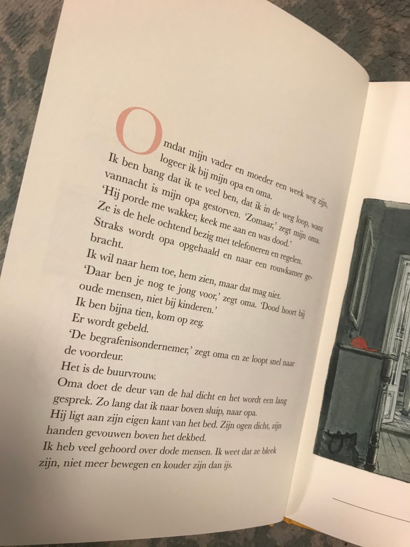Dit boek was ook een serieuze kandidaat voor de gouden griffel en van mij had het ook mogen winnen: Droomopa van Dolf Verroen. In rake zinnen vertelt dit boek het verhaal over de opa van Thomas die plotseling doodgaat als hij bij opa en oma logeert. “Dood hoort bij oude mensen” zegt oma. “Ik ben bijna tien, kom op zeg.” Voor alle stoere kinderen die best over de dood kunnen lezen. Want de dood hoort bij het leven.