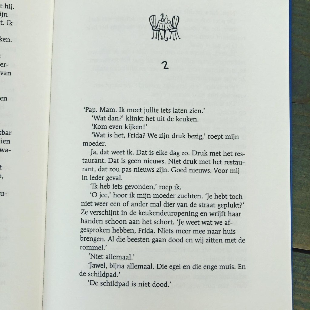 Ik las een boek dat eigenlijk voor minimaal 15+ is. Ook wel weer eens leuk: ik heb de afgelopen tijd zoveel kinderboeken gelezen dat ik er weer even aan moest wennen: langere zinnen en hoofdstukken, meer beschrijvingen en metaforen, maar o zo heerlijk om in het hoofd van een volwassen meisje te zitten.