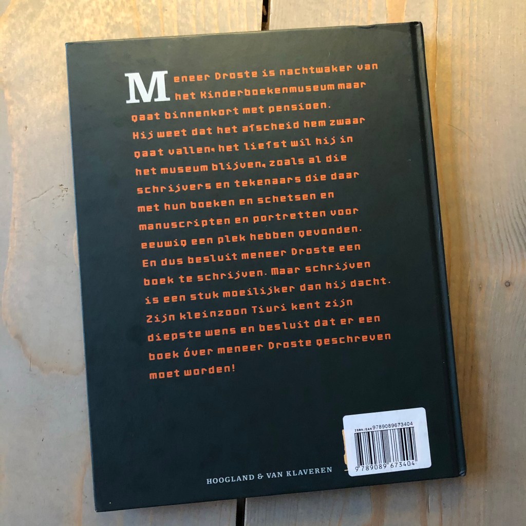 Tiuri, de kleinzoon van meneer Droste, wil dat er een boek geschreven wordt over zijn opa. Meneer Droste wil dat eerst niet, want hij wil ZELF een boek schrijven, dan zal hij namelijk een plekje bemachtigen in het Kinderboekenmuseum voordat hij stopt met er te werken.