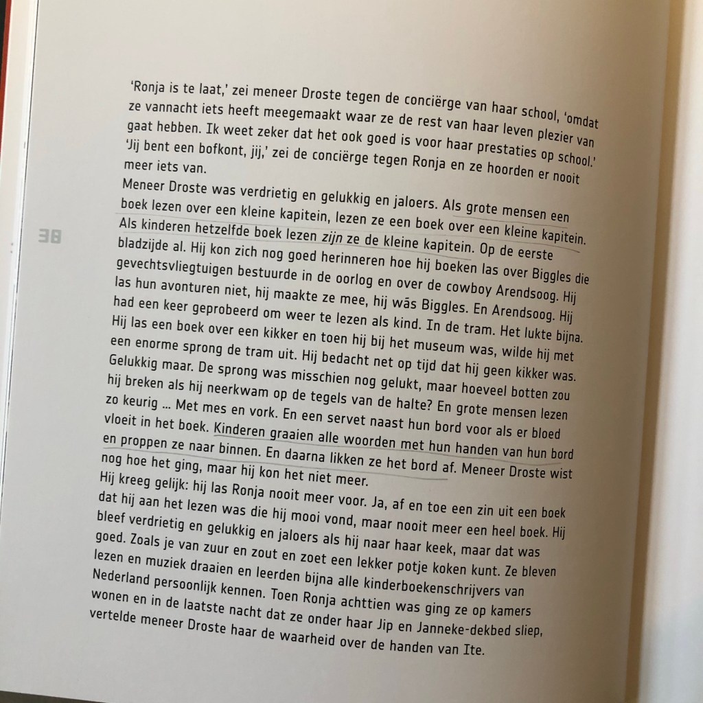 “Meneer Droste begreep niet dat veel kinderen rond hun dertiende ophielden met lezen. Ze houden ermee op, dacht hij, net als ze boeken het hardst nodig hebben.”