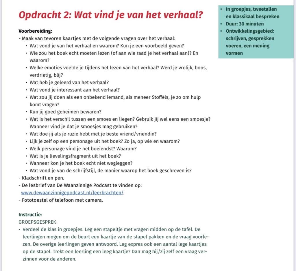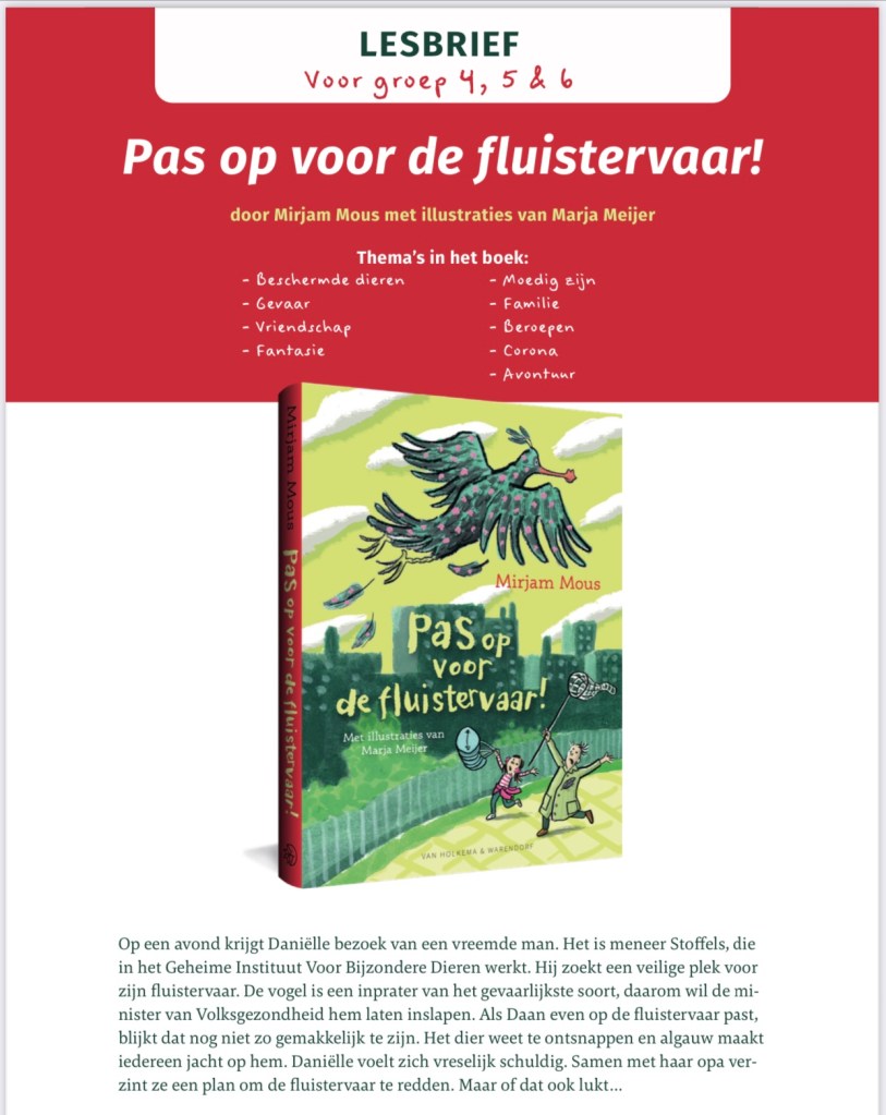 Op https://www.de-leukste-kinderboeken.nl/content/lesbrief-pas-op-voor-de-fluistervaar vind je mooi lesmateriaal om te gebruiken in groep 4, 5 en 6. Twaalf lessen waarin onder andere drama, taalbeschouwing en leesbevordering centraal staan. Perfect voor een hele themaweek over dit boek! Wat prachtig dat dit er is. Voor alle leerkrachten en pabo-studenten: het is de moeite waard om op zoek te gaan naar lesmateriaal bij boeken: veel uitgeverijen zetten dit gratis online!
