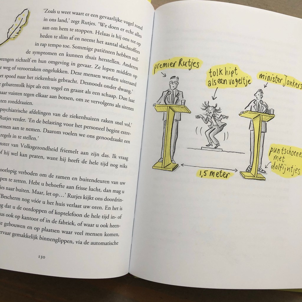 Door dit leuke boek kijk ook ik nu anders naar deze maffe periode van sociale onthouding, lege winkelstraten, restaurants en cafés en kinderen en volwassenen die thuis moeten leren en werken. Het is zo ongrijpbaar dat we er in ons hoofd van kunnen maken wat we willen. Wat is Corona eigenlijk? Wat doen we ermee, willen we er wel vanaf en wat gebeurt er als het ‘weg’ is?