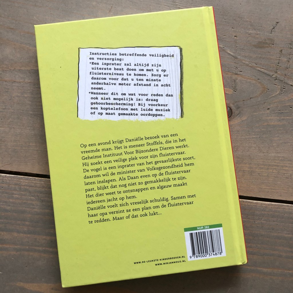 Hoofdpersoon Daan (Daniëlle) en opa Willem komen onverwacht oog in oog te staan met De fluistervaar. Zonder dat ze het in de gaten hebben, worden ze betrokken bij een groot probleem: de fluistervaar is namelijk niet alleen een prachtige grote groene vogel met paarse stippen, maar ook een geniepige fluisteraar die mensen maffe dingen in hun oren fluistert waardoor ze denken dat ze de koningin, een zeeleeuw of een duif zijn.