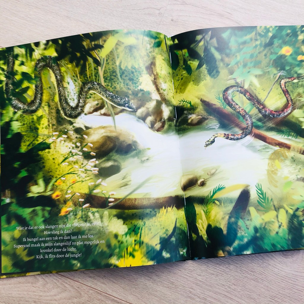 De grootste verrassing zijn de onverwachte dieren die ook blijken te kunnen vliegen: eekhoorns en slangen! Dat maakt nieuwsgierig naar meer, en daarin voorziet het boek ook: achterin vertelt Kim meer over de dieren, op een hele leuke en begrijpelijke manier.