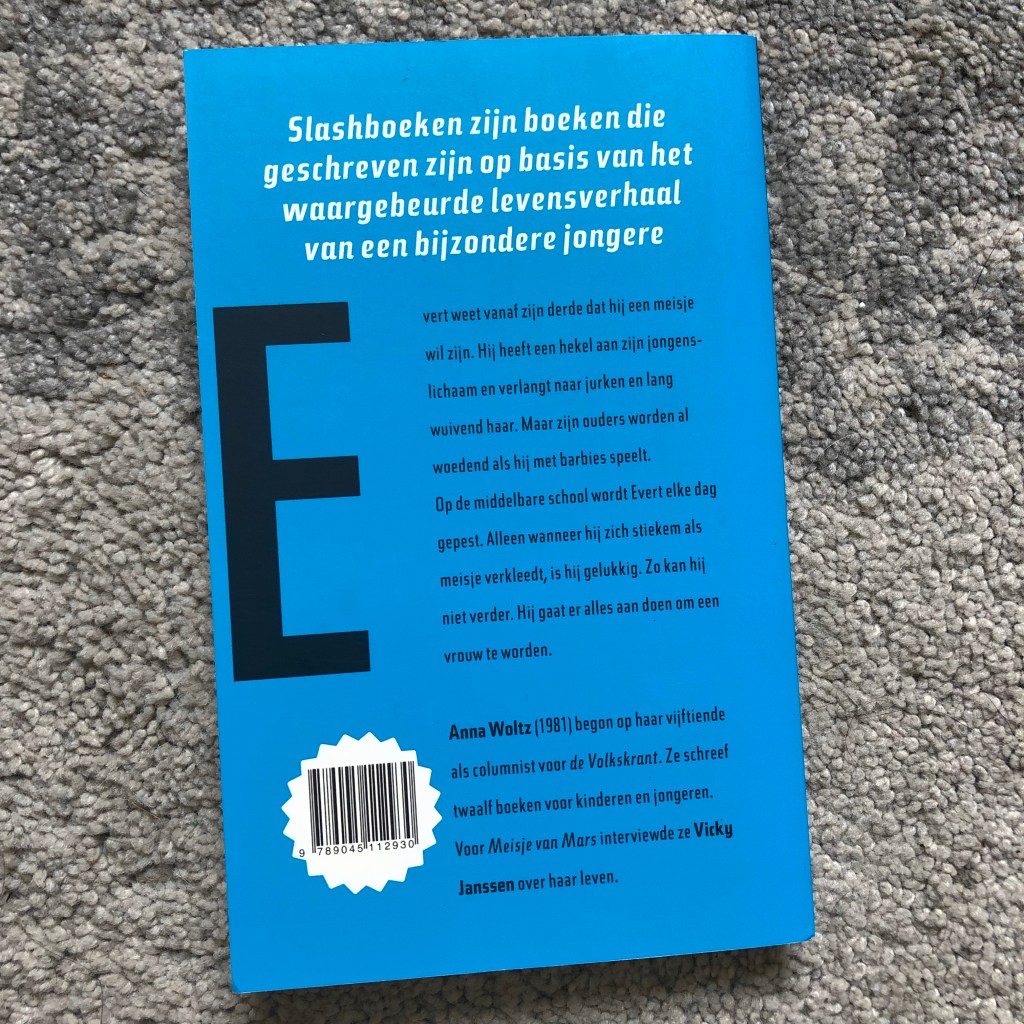 Na Mijn broer heet Jessica, dat ik niet zo sterk vond, is dit verhaal over hetzelfde thema een verademing: steengoed geschreven en zonder oordeel, eerlijk en ontroerend. Het waargebeurde verhaal van Vicky, die in het boek Evy heet. Een gruwelijk verhaal van pesterijen, zelfmoordgedachten en ouders die de identiteit van hun eigen zoon/dochter (nog) niet erkennen.