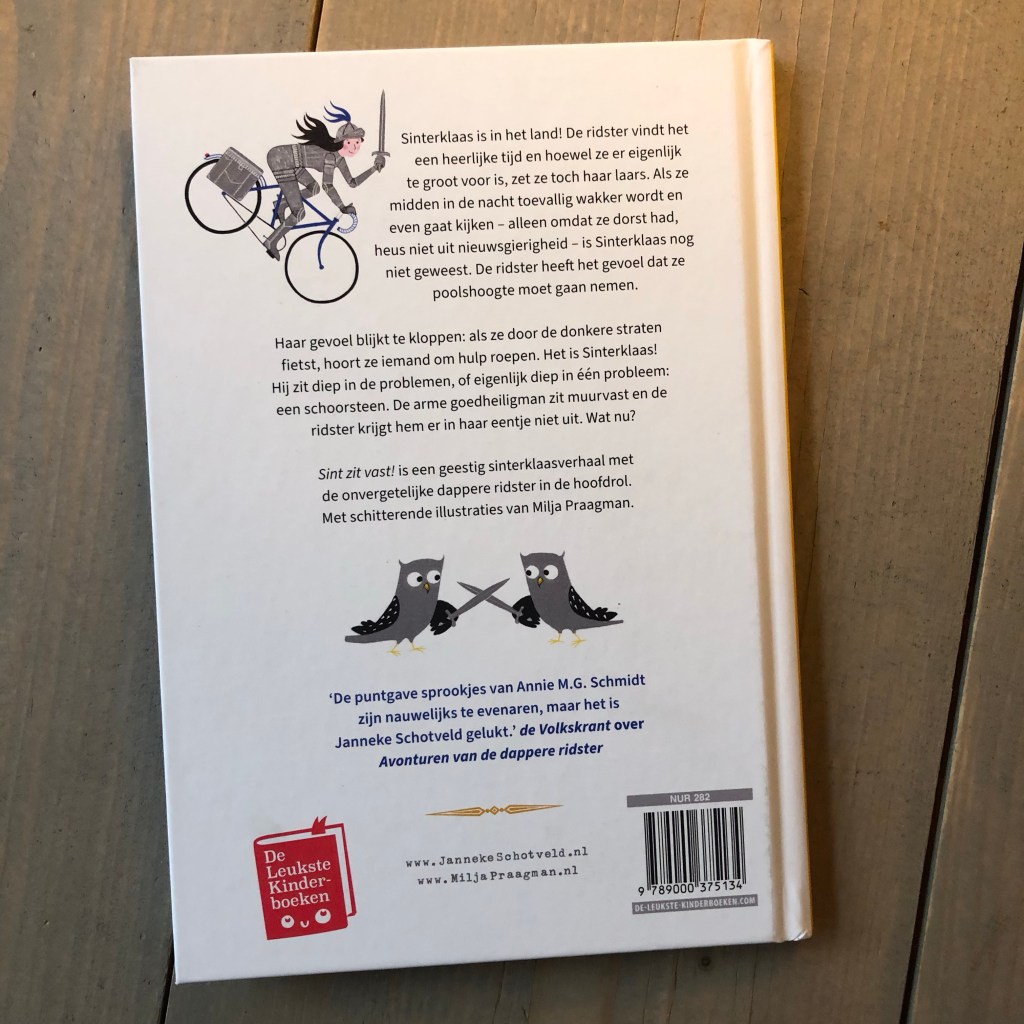 De dappere ridster raakt weer verwikkeld in een spannend avontuur, deze keer met Sinterklaas die in een lastig parket zit: hij zit vast in een schoorsteen en hij ‘moet nog een hoop’. Ja, een heleboel te doen, maar ook letterlijk een hoop, want hij moet nodig poepen. Hilarisch hoe Janneke Schotveld speelt met taal in dit nieuwe boek dat helemaal gaat over Sinterklaas en zijn pieten, én de dappere ridster natuurlijk!
