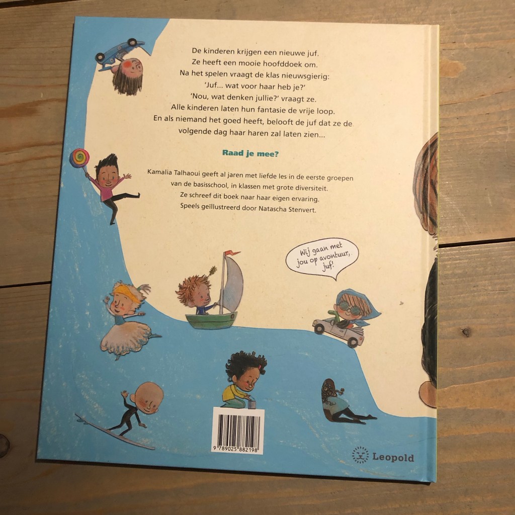 Hoofddoekjes zijn niet meer weg te denken uit onze maatschappij en dus ook niet uit het onderwijs. Moslima’s werken niet alleen op islamitische scholen. En dus is het voorstelbaar dat een kind de juf met hoofddoek vraagt: “Juf, wat voor haar heb je?” Een heerlijk nieuwsgierige en mooie vraag, die tevens de titel is van het mooie prentenboek dat Kamalia Talhaoui en Natascha Stenvert samen maakten.