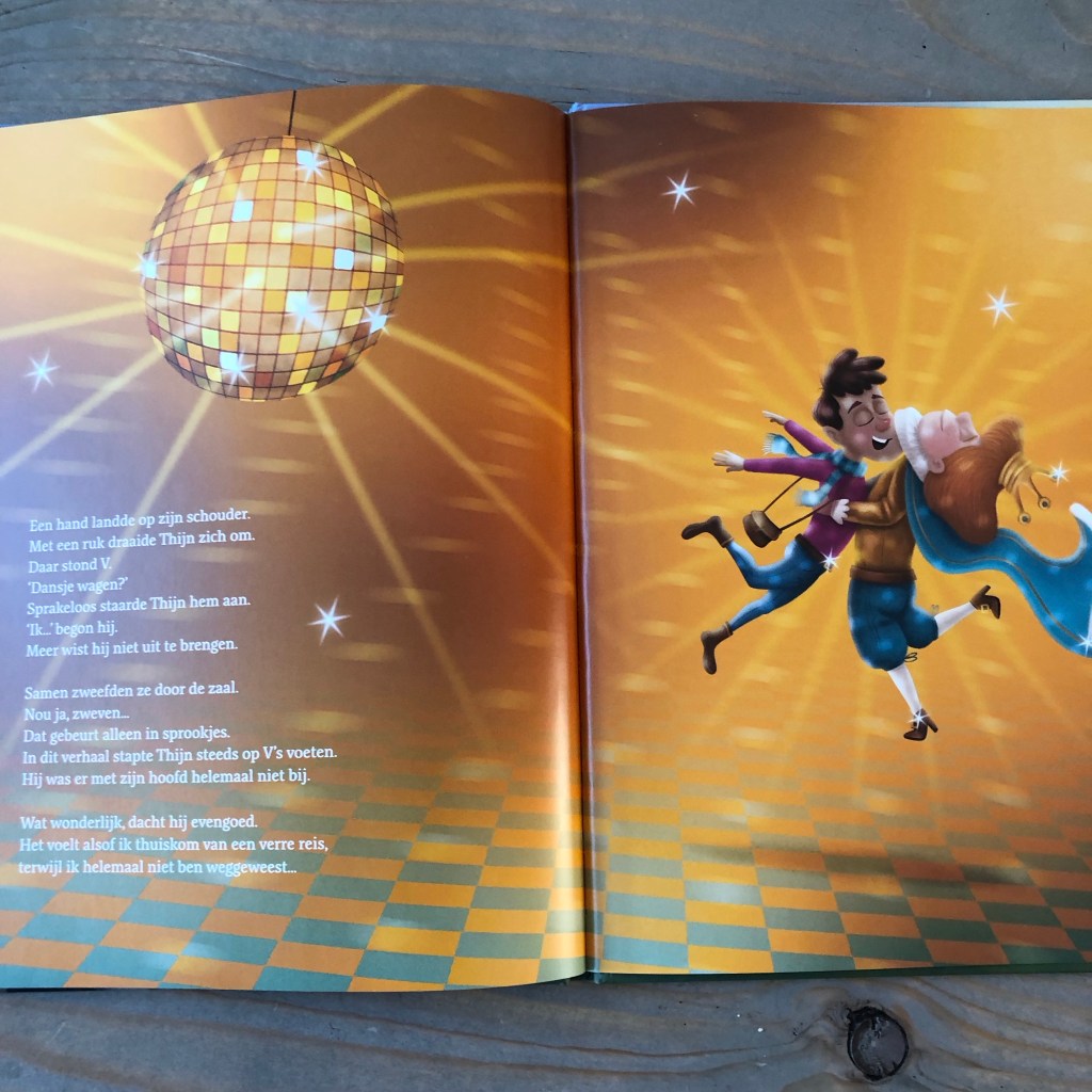 Tiny Fisscher beschrijft weer in fantastisch mooie zinnen (ja, ik ben nou eenmaal erg fan van haar werk) de worsteling van prins Thijn. De dromerige illustraties doen de rest. Het is sprookjesachtig, maar ook heel grappig. En dat Thijn en V twee jongens zijn die verliefd worden is heel gewoon, maar tegelijkertijd weten we dat het nog steeds niet zo gewoon is dat we diversiteit in kinderboeken tegenkomen. Daarom is het nog fijner dat dit boek er is. Laten we de liefde vieren!