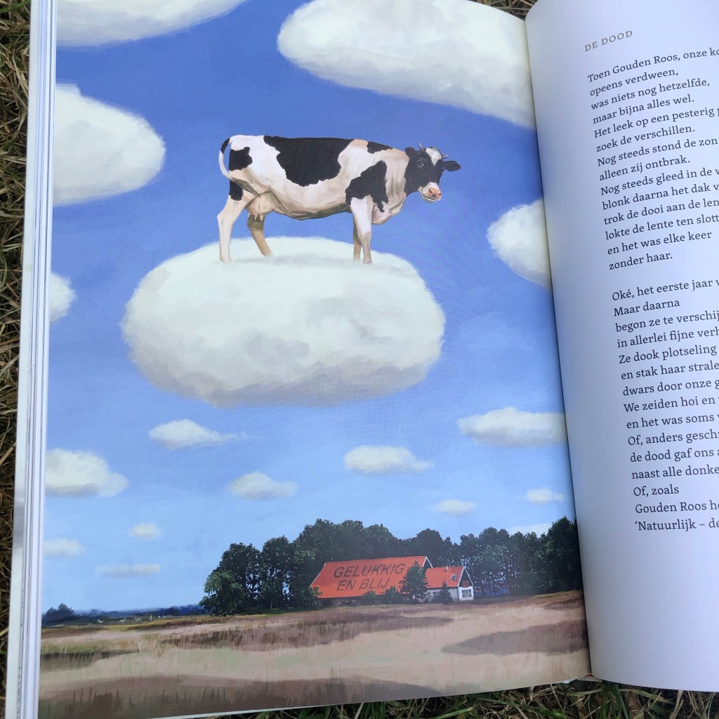In dit boek, de 100e (!) titel van Edward van de Vendel, zijn de dieren van zorgboerderij Gelukkig & Blij aan het woord. De koeien, schildpad J.J. van der Sluis, de ezels, de varkens, het roodborstje en de twee katten Hannes en Hassan: zij vertellen hun verhalen middels gedichten. Zij observeren, constateren, eren en relativeren (ik ga vanzelf poëtisch schrijven nadat ik al deze mooie gedichten las ;).