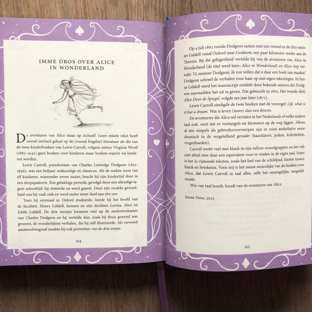 Als Imme Dros, de schrijfster die ik zo waardeer, dat zegt, dan zal het waar zijn, lijkt me. Toch heb ik nog nooit het hele verhaal van Alice in wonderland gelezen. Wel fragmenten en stukjes van de films, maar de samenhang ontbrak in mijn hoofd. Het werd tijd voor deze klassieker!
