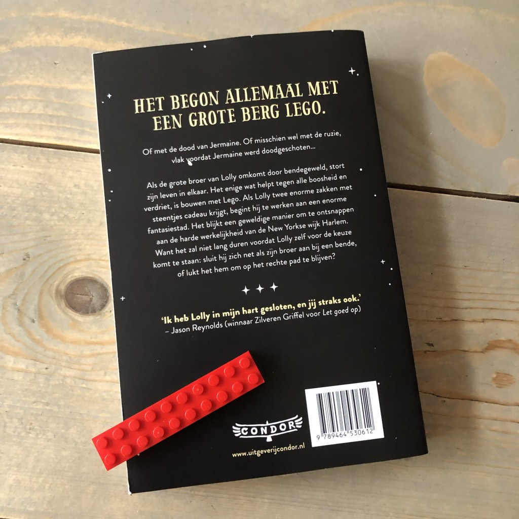 Lolly (zijn echte naam is Wallace) is een 12-jarige jongen die rouwt om zijn broer, die is omgekomen bij een schietincident. Lolly vindt een manier om met zijn verdriet om te gaan: door het bouwen van enorme bouwwerken met Lego. Lolly probeert uit de handen te blijven van de gewelddadige bendes, maar ook hij blijkt niet bestand te zijn tegen de enorme druk en verleiding van macht, status en eerwraak. Hij wordt op jonge leeftijd al geconfronteerd met het maken van volwassen keuzes en dat valt hem zwaar. Uiteindelijk is er voor hem wel een uitweg: iedereen kan individuele keuzes maken en voor het goede kiezen. Dit boek past in de traditie van de boeken van Jason Reynolds (Let goed op, 67 seconden) en Angie Thomas (The hate you give, De roos uit het beton) omdat het thema’s als kansengelijkheid, afro-Amerikaanse cultur en lhbtiq+-representatie bevat.