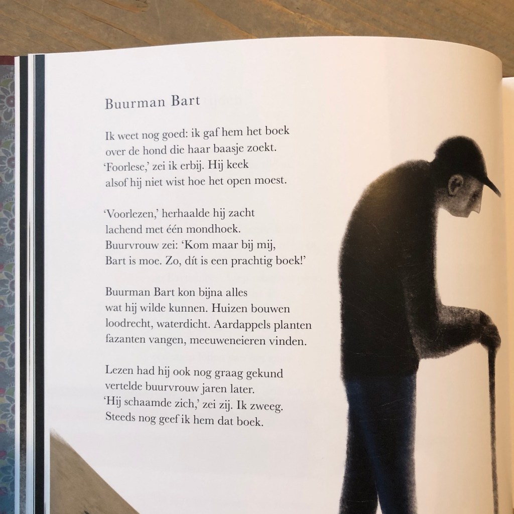 Vandaag las ik deze: Buurman Bart – over een man die zich schaamt dat hij niet kan lezen. Ontroerend mooi en confronterend. Dat is wat gedichten kunnen doen.