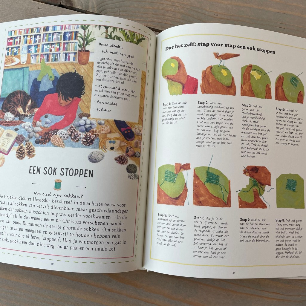 Ik heb geen idee. Ik weet wel dat ik heb genoten van het heerlijke boek Het handboek van vergeten vaardigheden dat volstaat met allemaal dingen waar je gelijk zin van krijgt om ze te doen. Een quilt maken, een kompas gebruiken, kruiden drogen, trucjes doen met muntjes, steentjes ketsen, knopen aannaaien en de leukste: ‘met bruin pakpapier en een touwtje een cadeautje inpakken’.