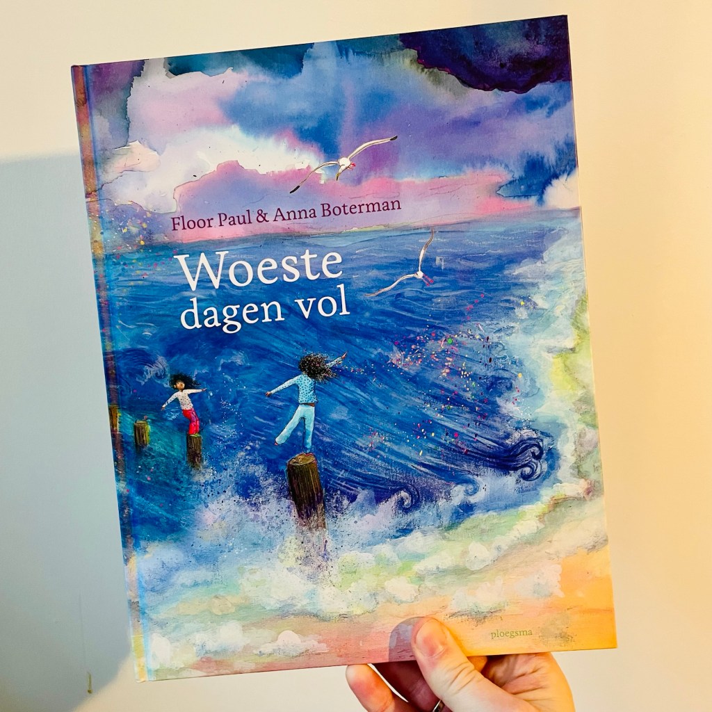 Ik denk dat het schitterende prentenboek Woeste dagen vol zich perfect leent voor dit moment. Dit pas verschenen boek is een adembenemend mooi, groot formaat prentenboek over hoe een meisje terugkijkt op fijne dagen met haar zus, die er niet meer is. Je weet níet wat je ziet als je het boek openslaat. Vanaf de eerste spread knallen de kleuren van de pagina’s af.