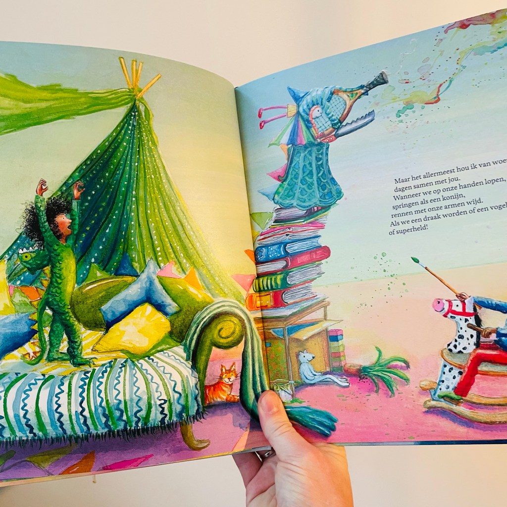 Wauw, ik heb niet vaak tranen in mijn ogen van een prentenboek, wat is dit mooi gedaan. De combinatie van de knallende kleuren en schitterende gedetailleerde tekeningen en de tekst is echt zo mooi en warm.
