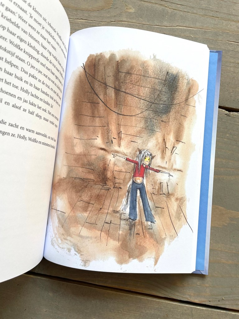 Overman slaagt er weer in om een verhaal op zo’n manier te vertellen dat het je betovert. Enerzijds met de kinderlijke naïviteit van Holly, die het moeilijk heeft met het verlies van haar vader en op zoek is naar een beetje liefde en warmte. Anderzijds door een verhaallaag van ‘de meute’. De volwassenen die bang zijn voor wat anders is, wat vreemd is. Die niet begrijpen dat je iemand soms het beste kunt ‘laten’ en dat je je niet overal mee hoeft te bemoeien. Natuurlijk lees je tussen de regels door over alle ophef die ontstaan is na het ontdekken van wolven in Nederland. Je leest over sociale media, de smartphones en AI die niet meer uit ons leven weg te denken zijn. En dat alles gesitueerd in een sprookjesachtig verhaal, waarin je niet precies meer weet wat echt is en wat niet.
