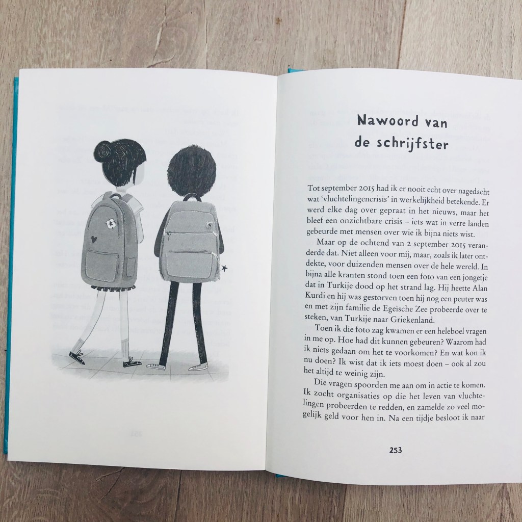 Achterin het boek staat veel achtergrondinformatie. Dit is fijn om erbij te hebben. De aanleiding van het boek is het nieuwsbericht over de aangespoelde peuter. Een nieuwsbericht dat de wereld shockeerde. De vragen achterin het boek zijn goed te gebruiken in de klas! Mooi dat dit boek er is.